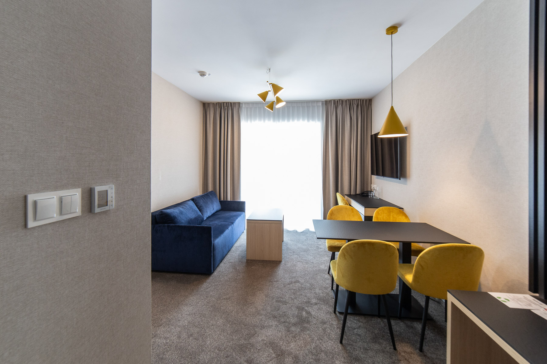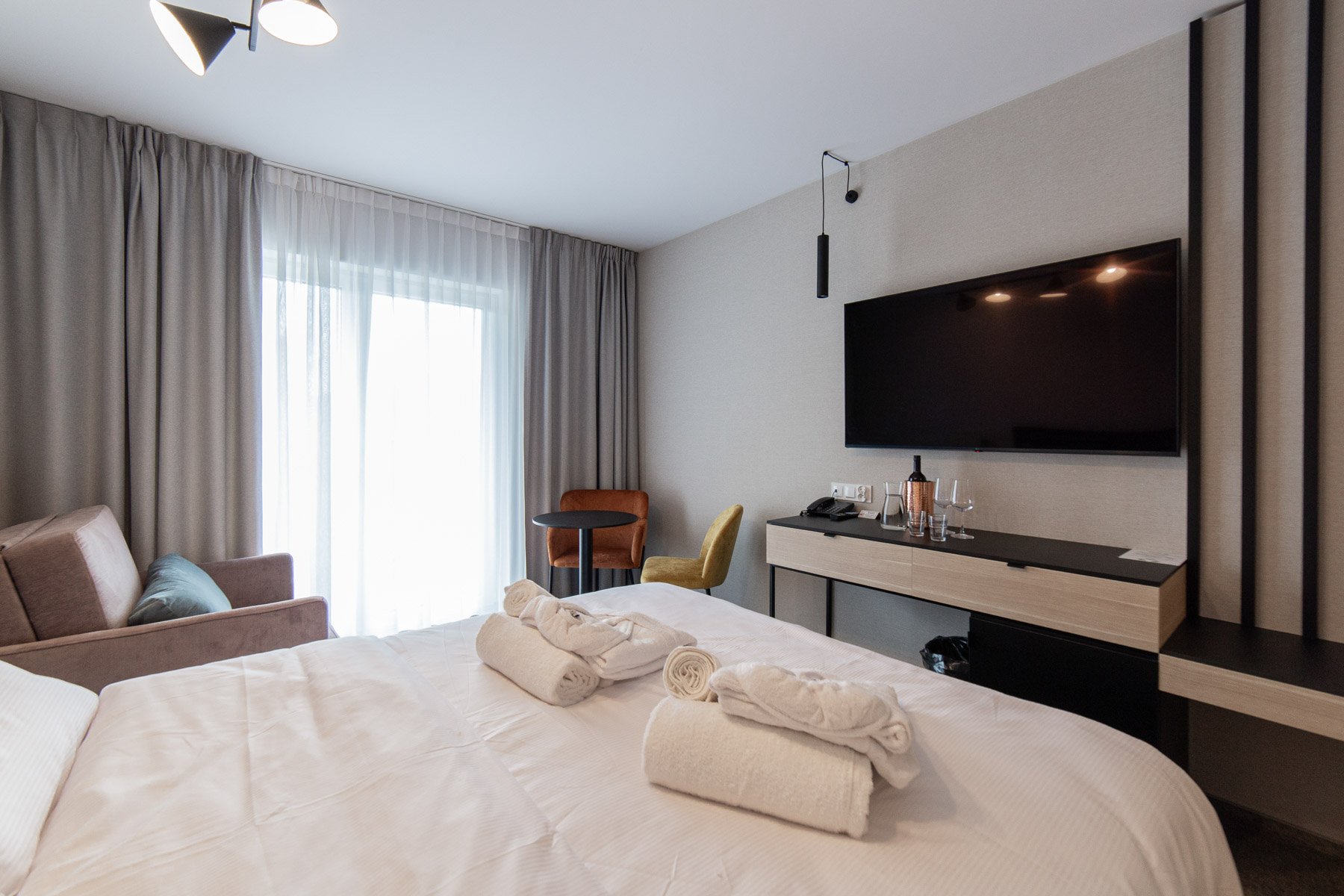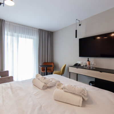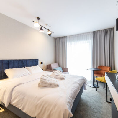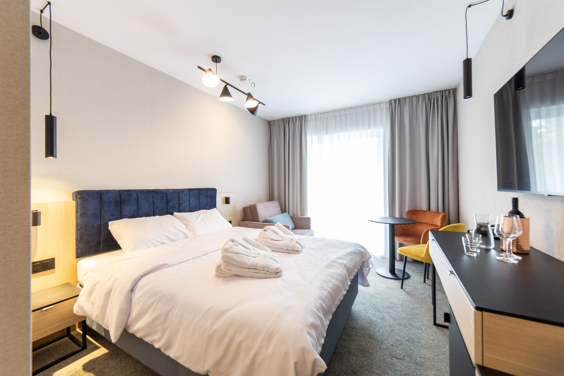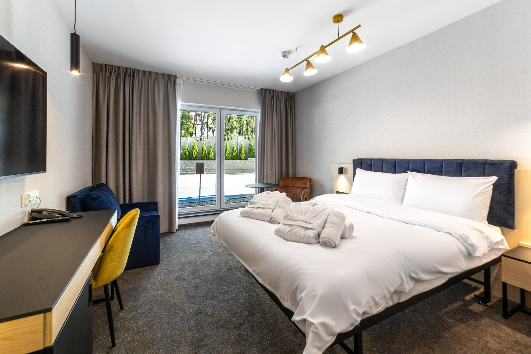Dla naszych Gości przygotowaliśmy 65 przestronnych, klimatyzowanych pokoi, w tym komfortowe apartamenty z widokiem na zatokę. Wnętrza łączą elegancję z funkcjonalnością, zapewniając relaks zarówno podczas krótkich wizyt, jak i dłuższego wypoczynku.